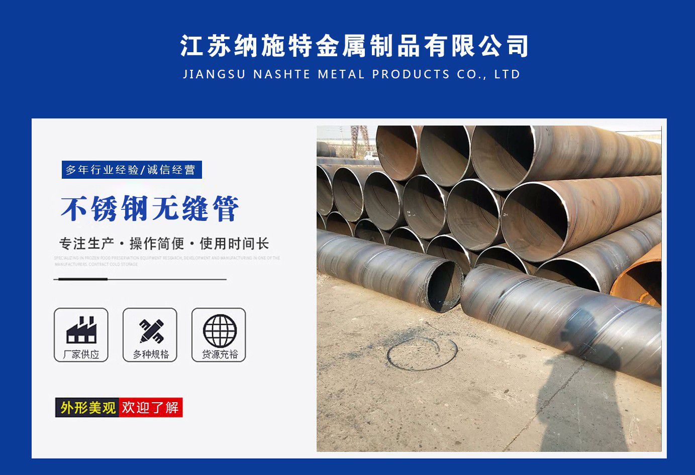 江蘇納施特金屬制品有限公司是一家集生產205不銹鋼無縫管,2507不銹鋼無縫管,316l不銹鋼焊管廠家,不銹鋼工業焊管廠家,厚壁無縫鋼管廠家等產品,公司庫存多規格齊全、質量保證。公司一貫以服務至上、質量至上、價格合理、客戶至上、讓利客戶、薄利多銷為原則,誠實守信為宗旨?! 」颈小皟炠|的品質和服務創造企業品牌”之宗旨,與國內外多家知名廠商建立了長期穩定的合作伙伴關系,精心匯聚各廠商的品牌產品,實現了資源互補,以適應市場的不同需求,協助廣大廠商提高自身的競爭力,是您的理想合作伙伴。 公司下屬:業務部、財務部、快運部、運輸部、倉儲部、加工部、(自備貨車、吊車、行車、自動切割、半成品)免費為用戶提供裝卸等一條龍服務。保證用戶利益、互惠互利做生意、誠心誠意交朋友。 服務承諾:提供優質的不銹鋼及有關產品,遵守道德標準,努力提供獨特的產品和高水平服務。 質量承諾:隨時為客戶提供產品和服務,充分領會客戶要求,盡職盡責,永無例外,竭盡全力,持續發展。 公司秉承:“顧客至上,銳意進取”的經營理念,堅持“客戶至上”的原則為廣大客戶提供優質的服務。 愿我們公司和社會各界同仁、諸位朋友、尊貴的各位客戶攜手并進,共同發展,同繪新世紀的宏偉藍圖! 公司宗旨:優質的品質和服務創造企業品牌。 經營理念:以...